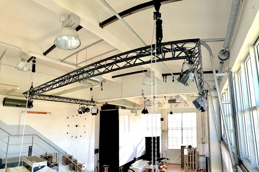 Die Filmlocation in Berlin verfügt über eine hohe Decke von 7 Metern. Das erlaubt Ihnen Aufnahmen aus und in luftiger Höhe. Hierzu können Sie unter anderem Flaschenzüge, Traversen oder Longen nutzen. Besonders praktisch, wenn Sie die gesamte Szene von oben zeigen möchten. Das Loft ist außerdem mit Starkstromanschlüssen ausgestattet, sodass Sie alle Komponenten Ihres Equipments problemlos anschließen können. Unsere Filmlocation in Berlin ist der optimale Platz, um Videos mit lautem Sound zu drehen. Denn hier werden Sie keine Probleme mit Nachbarn bekommen, die sich von den Geräuschen belästigt fühlen.